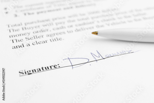 Ballpoint pen and signature on contract, closeup