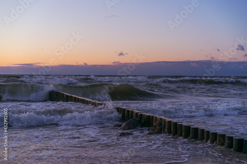 Baltic sea, front scenic view of waves on the beach, travel and summer panoramic background, web banner