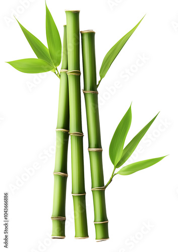 bamboo green sticks with leaves isolated on transparent background