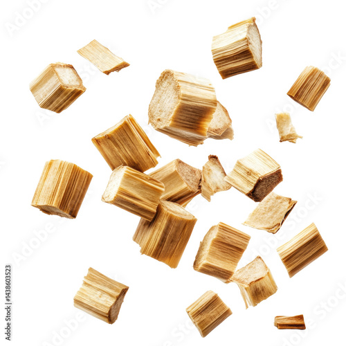 Bamboo Shoot Cube Cuts Falling Midair Crisp isolated on a transparent backgroun