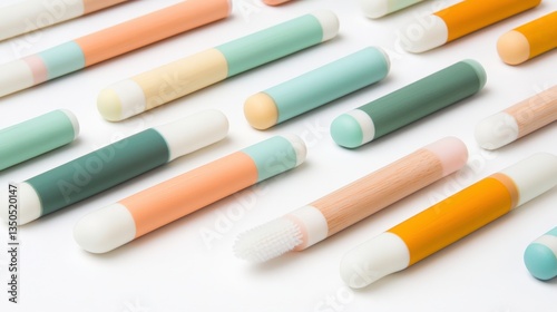 Bamboo Toothbrushes on White Background in Pastel Tones