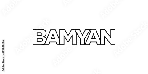 Bamyan in the Afghanistan emblem. The design features a geometric style, vector illustration with bold typography in a modern font. The graphic slogan lettering.