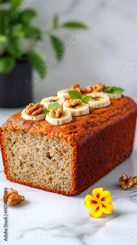 Banana bread walnuts with kitchen table.