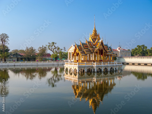 Bang Pa-In Aisawan, artificial lake with bridge and temple at the Royal Summer Palace near Bangkok