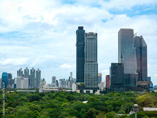 Bangkok cityscape skyline Thailand, Lumphini Public park and Bangkok cityscape in metropolis city.