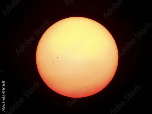BANGKOK THAILAND, March 21,2016 : The Sun seen from planet Earth, with sunspots visible as dark spots compared to surrounding regions (Real photo with my camera no NASA images used)