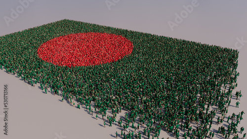 Bangladeshi Banner Background, with People coming together to form the Flag of Bangladesh.