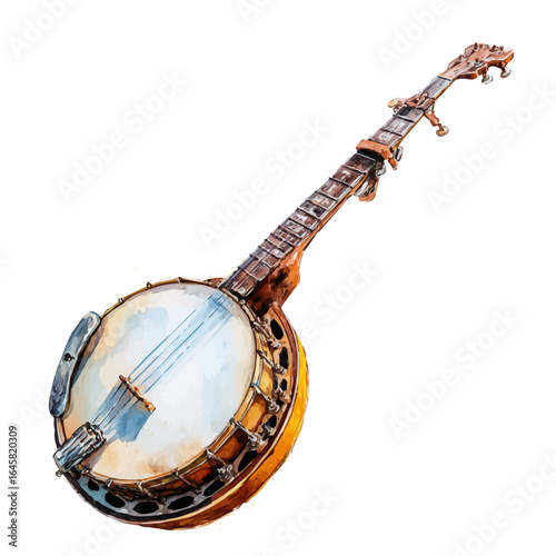 Banjo in watercolor style, vector illustration, isolated on white background.