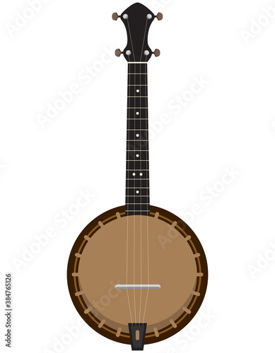 Banjo isolated on white background. Musical instrument in cartoon style.
