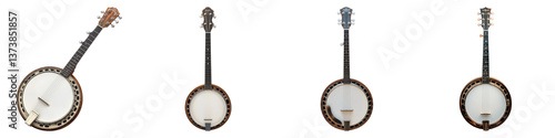 Banjo musical instrument isolated on transparent background. PNG , Set of