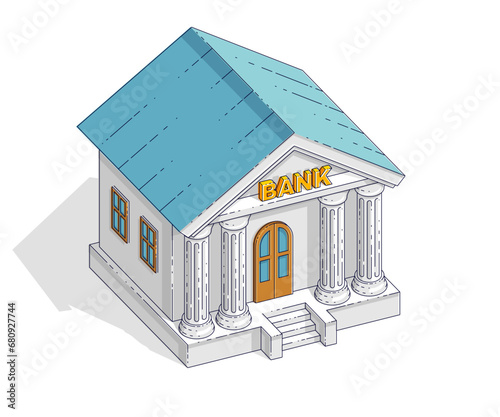 Bank building retro vintage architecture cartoon isolated over white background. Vector 3d isometric business and finance illustration, thin line design.