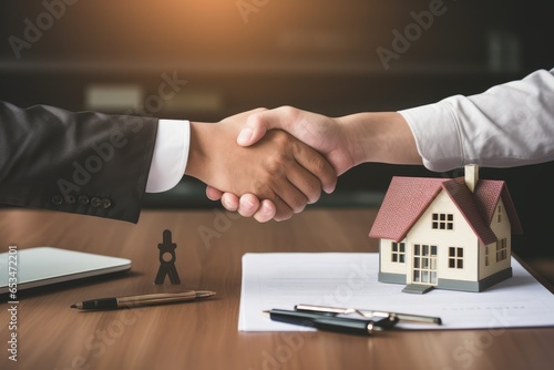 Bank loan officer shakes hands with customer to Congratulations after home loan approval. Generative ai