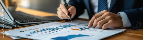 Bank manager explaining financial data on savings account growth to client.