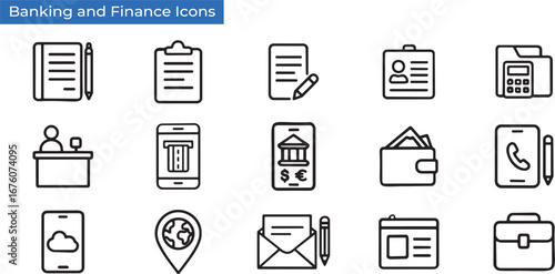 Banking and Finance Icons - Transactions, Wallet, ATM, Personal Finance Vector Set.