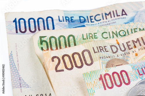 Banknotes from Italy. Italian lira 10000, 5000, 2000, 1000.