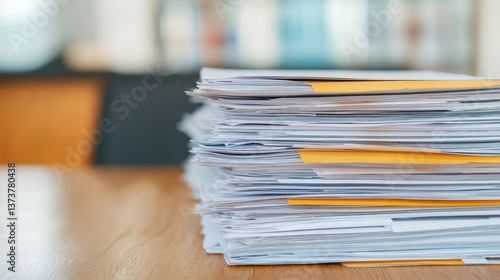 Bankruptcy documents piled high office environment close-up financial obligation challenge