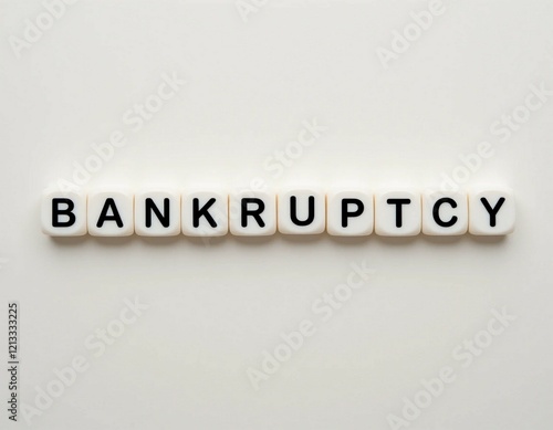 Bankruptcy: Financial Crisis Concept, Debt, Insolvency, Tiles, Letters, Cubes, White Background
