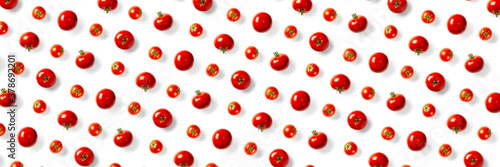 banner - creative background from red tomatoes. Abstract background. of isolated ripe Tomato on the white background not seamless pattern
