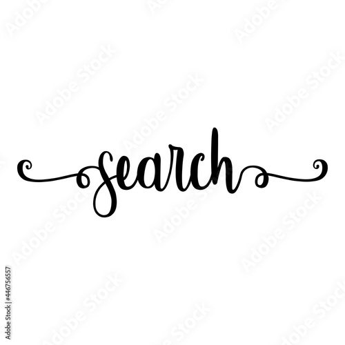 Banner con texto manuscrito search escrito a mano con florituras en color negro