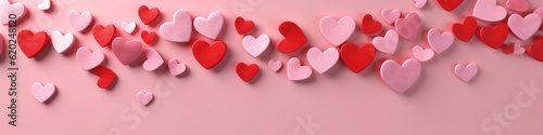 banner. Paper heart on pink background. Happy Women's, Mother's, Valentine's Day. generative ai, ai, generative
