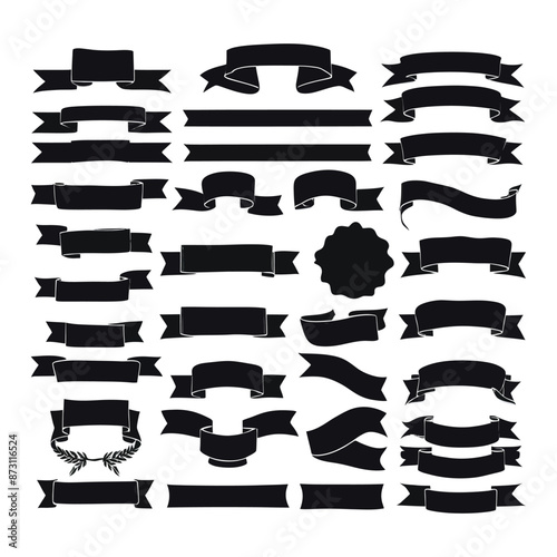 Banner ribbon set silhouette vector black shape