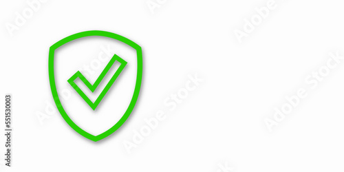 Banner shield check mark icon. Place for your text. Cope space. Vector illustration