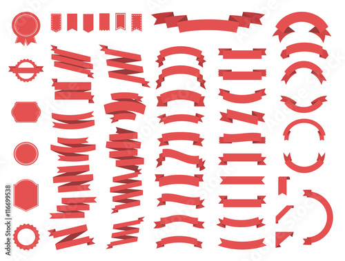 Banner vector icon set gold color on white background. Ribbon isolated shapes illustration of gift and accessory. Christmas sticker and decoration for app and web. Label, badge and borders collection.