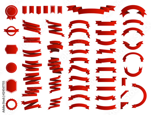 Banner vector icon set gold color on white background. Ribbon isolated shapes illustration of gift and accessory. Christmas sticker decoration for app web. Label, badge borders collection.
