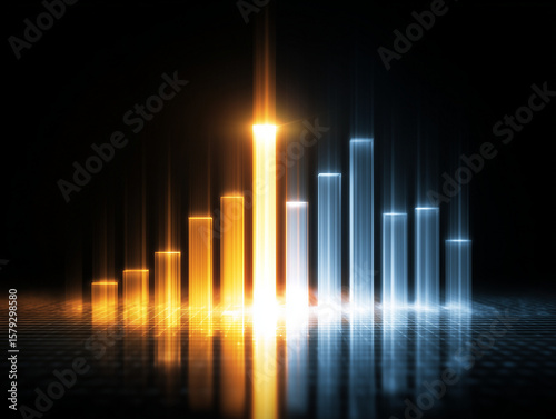 Bar chart with one bar far surpassing others, glowing with radiant energy