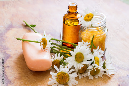 Bar of natural soap, sea salt and oil with camomile