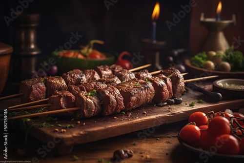Barbecue ancho steak. Ancho steak on the Churrasco, generative AI tools.