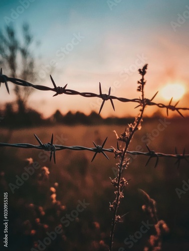 Barbed Wire Fence at Sunset