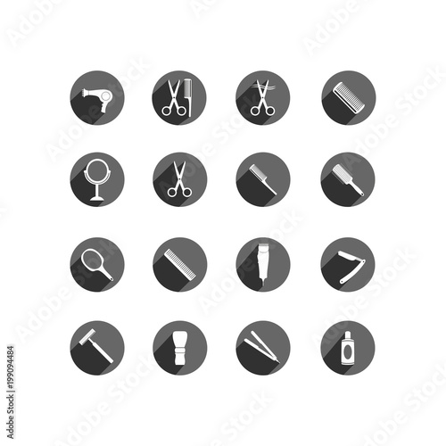 Barber beauty salon accessories. Flat set icon vector illustration.