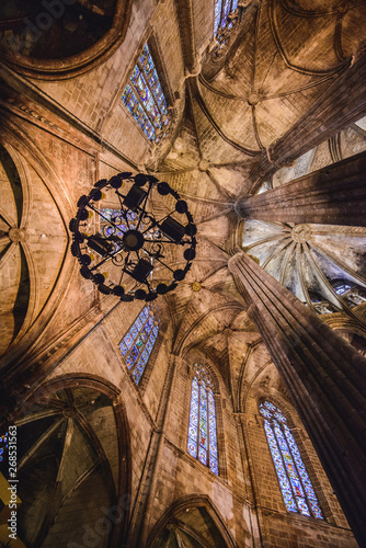 BARCELONA - MAY 10 2019: Interior of Cathedral of the Holy Cross and Saint Eulalia, in Barcelona, Spain