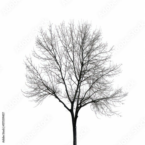 Bare branches reaching towards a clear sky, creating a stark silhouette against the white backdrop
