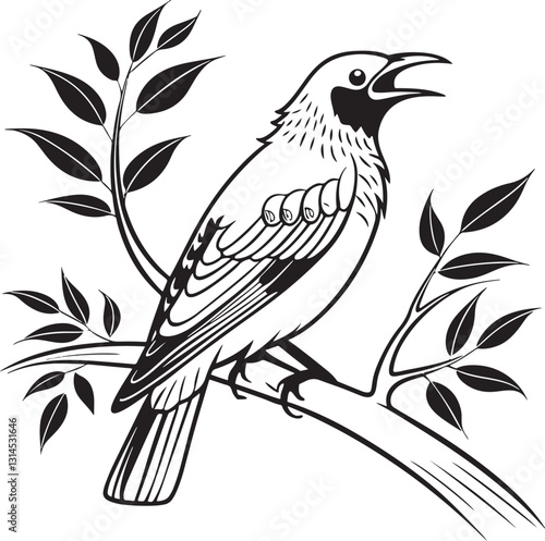 bare throated bellbird bird silhouette vector illustration