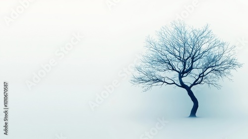 Bare Tree Silhouette in Misty Landscape