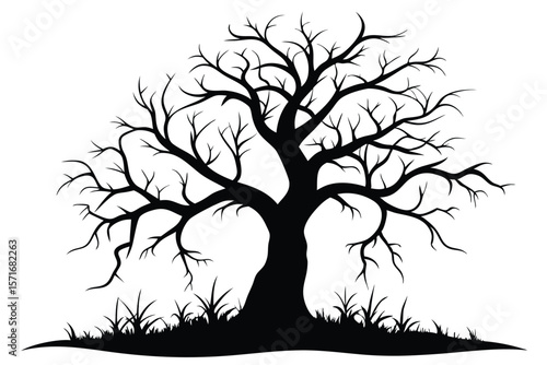 Bare Tree Silhouette with Grass at Base of Trunk on a Mound of Dirt