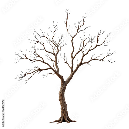 Bare Tree with Twisted Branches Against Transparent Background in a Natural and Artistic Style