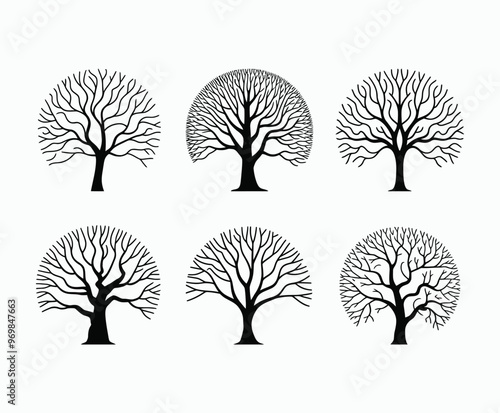 Bare trees silhouette EPS vector file or hand drawn trees isolated illustration