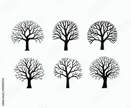 Bare trees silhouette EPS vector file or hand drawn trees isolated illustration
