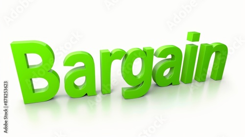 "Bargain" text in green, isolated on white, wide illustration