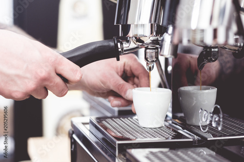 barista bei der zubereitung von kaffee, espresso, cappuchino