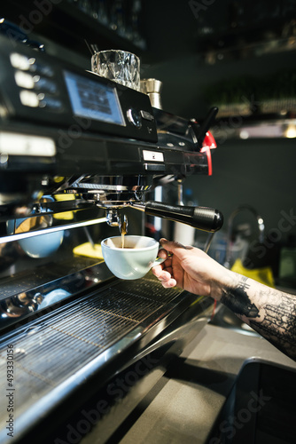 Barman getting hot beverage from coffeemaker