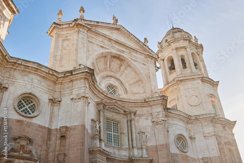 Baroque and neoclassical facade of the Cathedral of Cadiz, Spain, under morning light