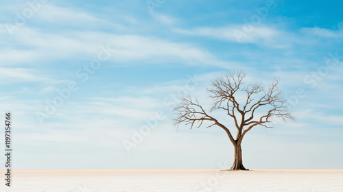 barren landscape with single tree symbolizes resilience against climate change