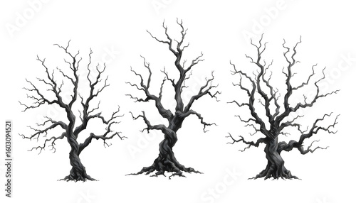 Barren trees in black and white nature artwork minimalist style serene environment artistic perspective