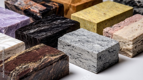 Bars of colorful handmade soap with textures stacked on white background for skincare natural product promotion