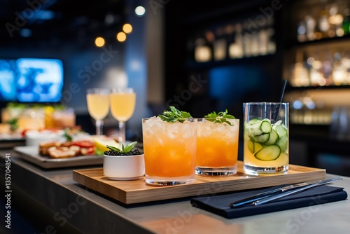 Bartender preparing cocktails and drinks for aperitivo time in a modern bar