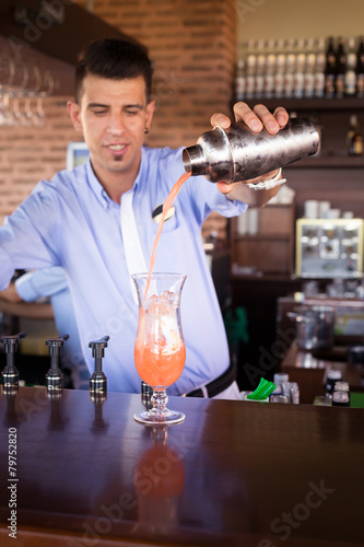 Bartender preparing Sex on the beach cocktail in an outdoor bar